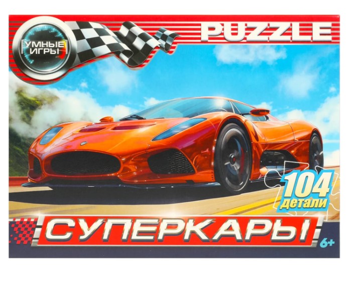 —Пазлы классические в коробке. 104 детали. 190х141х35 мм, 'Суперкары', 367457