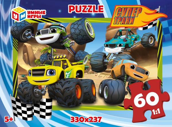 Пазл классический в коробке. 60 деталей. Супер кары, 190х141х35 мм, 340463