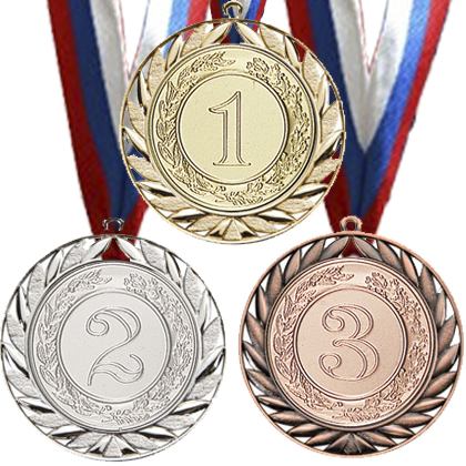 Медаль 3 место пластиковая, d-5,5 см., лента красная