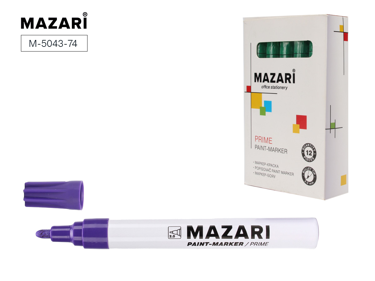 —Маркер-краска PRIME, ФИОЛЕТОВЫЙ, пулевидный наконечник, ширина линии письма 2 мм, M-5043-74
