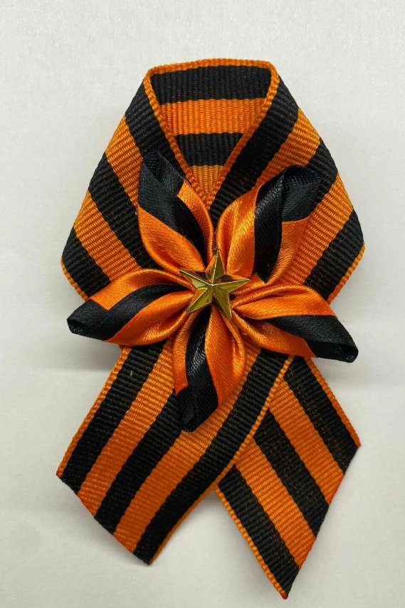 Значок Брошь-3D 'Цветок со звездой ВОВ, с георгиевской лентой
