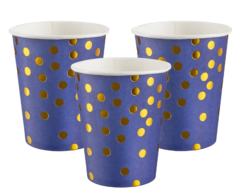 Стаканы (250 мл) Конфетти, Синий/Золото, Металлик, 6 шт, 6231383