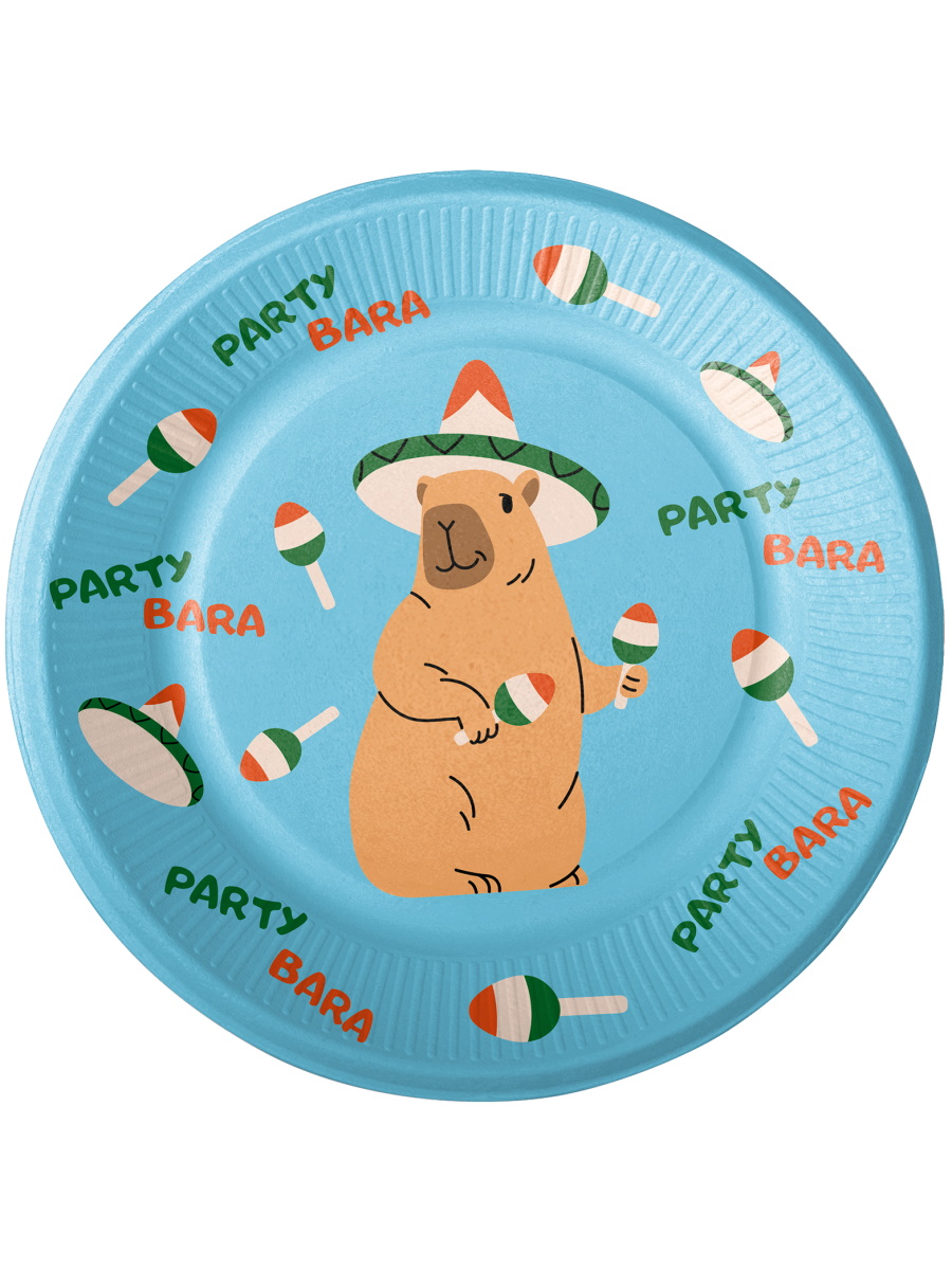 —Набор тарелок бумажных 'Капибара танцует', 23 см, (6 шт;уп), ТБ-3850