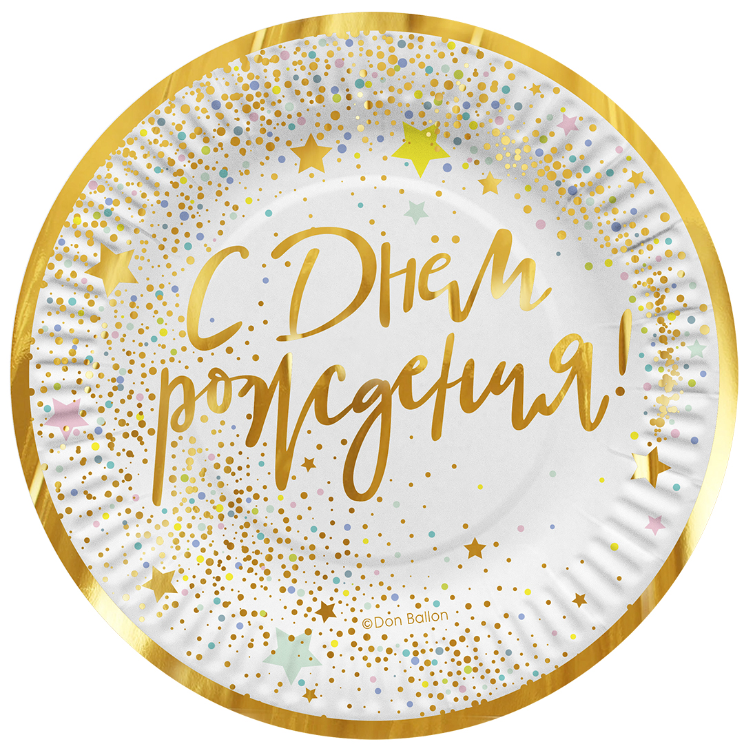 —Тарелки (7'';18 см) С днем рождения (сверкающие блестки, металлик), (6 шт;уп), 77573