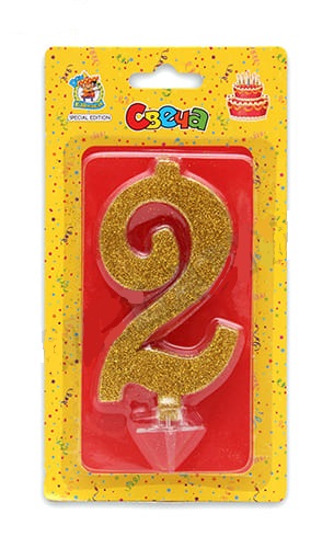 —Свеча для торта 'Цифра 2. Золотой глитер' Миленд, картон. уп., европодвес, С-1894