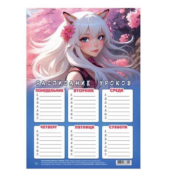 Расписание уроков, 20х29 , дизайн ассорти, (20 шт;уп), РУ1;2;9;11